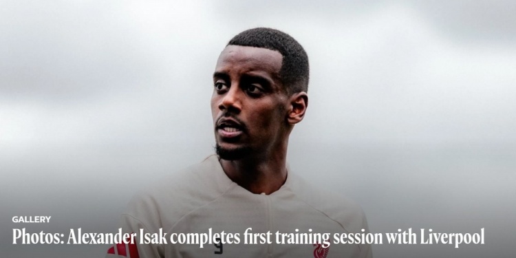 9月11日讯 利物浦官方晒照,伊萨克完成了在俱乐部的首次训练。