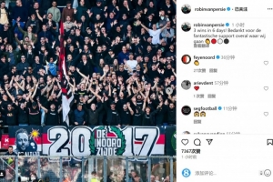 范佩西社媒晒出费耶诺德球迷的照片,配文:“6天之内取胜3场!感谢你们无处不在的大力支持!”